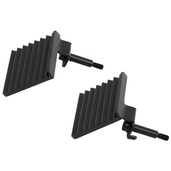 Enjoy driving your Jeep with the doors off a little more with a Set of Fishbone Offroad Foot Pegs. The foot pegs are designed to be comfortable, with an included rubber stop to prevent paint damage and to keep them from rotating while in use. Foot Pegs come in a gloss black powder coated finish. Sold in pairs.