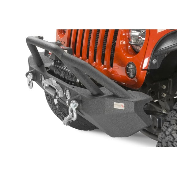 Protect the entire front of your JK with this Fishbone Offroad Full Width bumper. Fishbone Offroad uses a recessed winch plate to keep air moving across your grill. This bumper includes 2 LED lights that are installed in the bumper. Fishbone Offroad ships this bumper with all necessary hardware to install it and includes 2 d-rings so that you're ready for the trail. Bumper will not accept a Warn ZEON winch. Made on durable black textured powder coat finish.