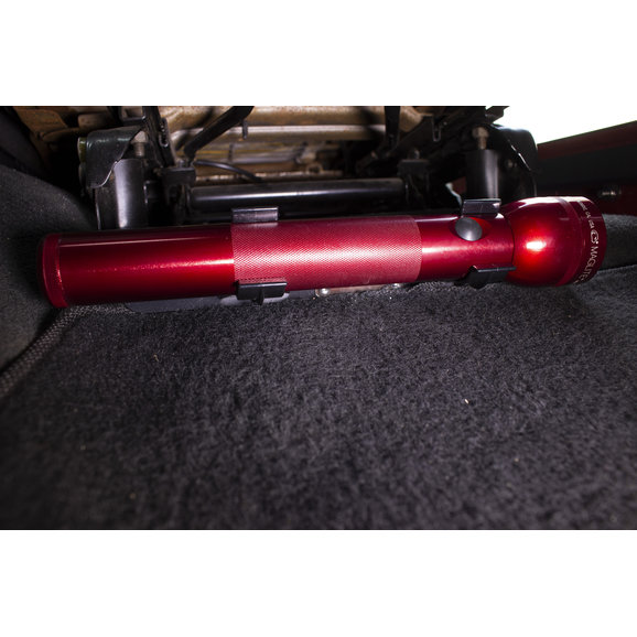 Flashlights always seem to disappear when you need them at the most crucial moment. Instead of fiddling around your Wrangler TJ for that light that is rolling around why not get a Front Seat Flashlight Mount so you can store a D-Cell flashlight right by you within reach. No longer will you be trying to reach for a flashlight that is rolling around or searching around in the dark for one when you most need it. Mounts on driver or passenger seat rails Does not come with flashlight.