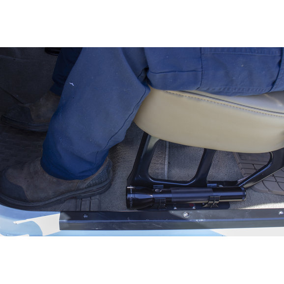 A flashlight can come in handy in many scenarios, like maybe you get a flat on your Wrangler YJ at night. One problem might be finding said flashlight inside your Jeep because it has rolled around all over the place and you find yourself spending too much time trying to find it. That is where this Front Seat Flashlight Mount comes in to play so you can store a D-Cell flashlight right by you within reach. No longer will you be trying to reach for a flashlight that is rolling around or searching around in the dark for one when you most need it. Does not come with flashlight.