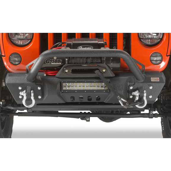 The Fishbone Front Stubby Winch Bumper with Tube Guard is ready to light up the trail. Its narrow design hugs the bottom of the grill for tire clearance and allows your tires to hit the obstacle before the bumper. This bumper is designed to accept a 14" overall length LED light bar. The bumper is ready to accept a winch and includes a fairlead mount. Fishbone Offroad ships this bumper with all necessary hardware to install it and includes 2 d-rings so that you're ready for the trail. Made with durable black textured finish.