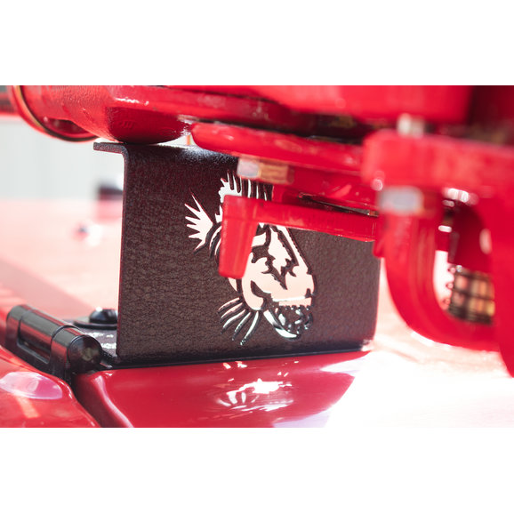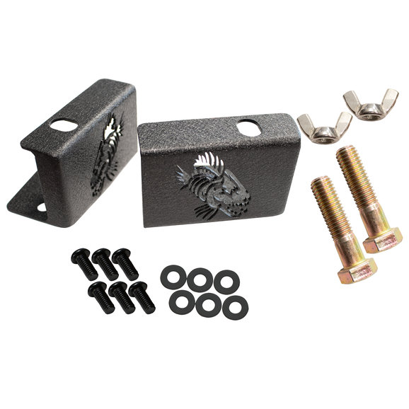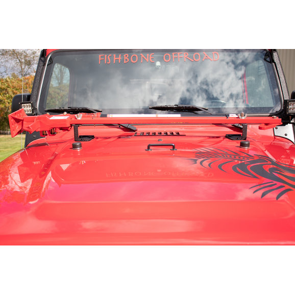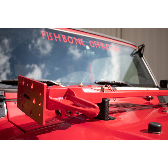The Fishbone Offroad Hood Mounted Hi-Lift Jack Mount safely locates your awkward Hi-Lift jack to the hood without taking up much needed interior space. With this mount, you now have no excuse for not bringing it along. Mount this to your hood hinges for the ultimate off-road style and function with the included hardware. These mounts are manufactured from stainless steel with a black powder coated finish to protect it from the elements. Built to accommodate 48” to 60" Hi-Lift Jacks. These do not interfere with windshield sprayers.