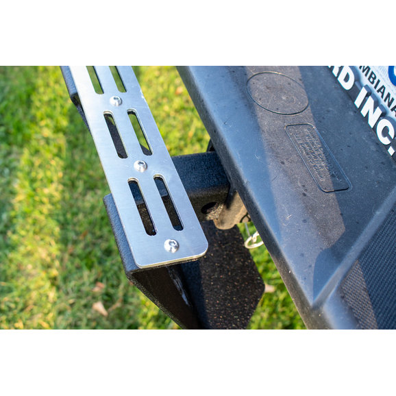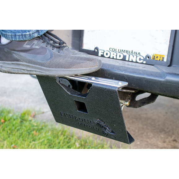 The Fishbone Offroad Hitch Mount Step will fit ANY Vehicle that has a 2" Receiver Hitch. All you need is the hitch pin to hold it in. With this step you can avoid using your bumper to access items on the top of your Jeep or the bed of your Truck. Fishbone's Hitch Mounted Step is a great way to safely access these hard to reach items and also protects the back of your vehicle when you are in parking lots. If you use this on the trail it will also act as a skid plate to help prevent damage to your vehicle.