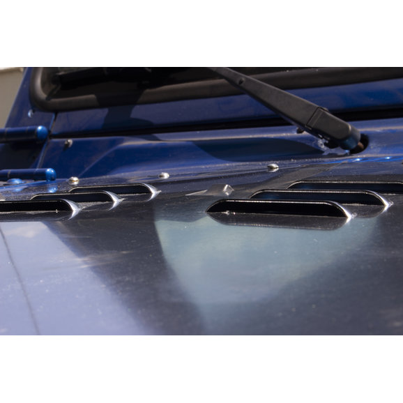 Reduce underhood engine heat while providing a new style to your Jeep Wrangler TJ with this Hood Louver from Fishbone Offroad. Choose from a durable powdercoated black or a ready to paint out of the box raw aluminum finish. Manufactured to work with your factory hood bumpers, footman loop, and wiper nozzle(s).