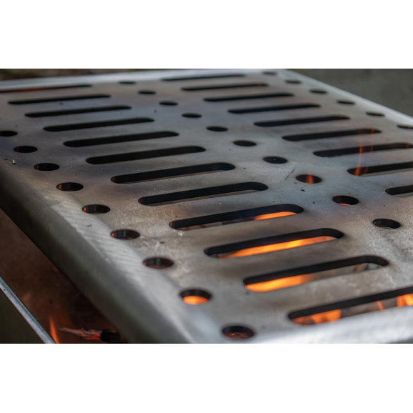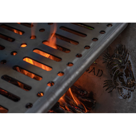 Built Tough: Made from Precision Cut and Formed Solid 1/8" Steel Multi use: Open Fire or Easy to Remove Steel Cooking Grate- Features: Foldable