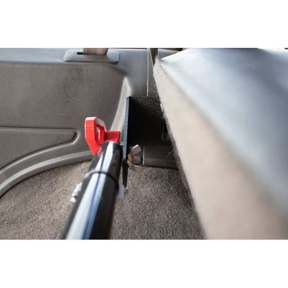 The Fishbone Offroad Rear Seat Hi-Lift Jack Mount safely locates your awkward Hi-Lift jack to the rear cargo area of your Jeep Cherokee XJ without taking up too much of the interior space. This secures your Hi-Lift jack without blocking the field of view through the rear window below the sightline of the rear seats. The mounts are easy to install to existing seat catches using the factory hardware. These mounts are finished with a black powder coat and features the hardware to secure the jack to the mounts. Built to accommodate 48” Hi-Lift Jacks.