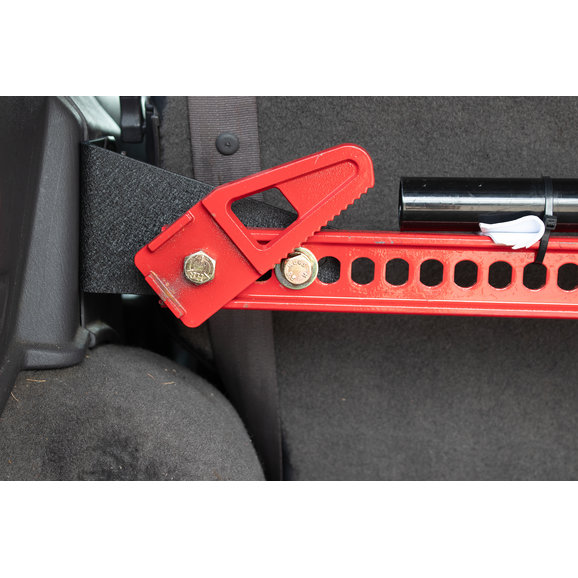 Out of View: Secures your Hi-Lift jack without blocking the field of view through the rear window below the sightline of the rear seats.