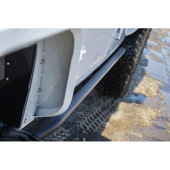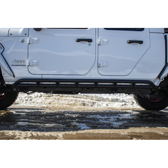 The Fishbone Offroad Rocker Guards are the sliders to protect the side of your Gladiator. With easy installation, these mount to the underside of the Gladiator using the three factory mounting locations. The black textured powder coat will protect these sliders from normal use. The Step Sliders are built for medium duty protection of your investment out on the trails.