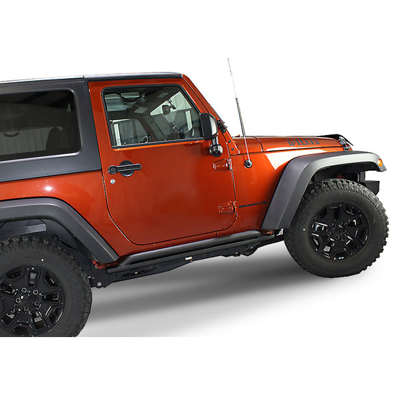 The Fishbone Offroad Rubicon Rock Sliders are designed to fit the Jeep JK Wrangler, and are ready for anything. Manufactured using boxed steel for strength, then powder coated black for a long lasting finish and performance. The sliders bolt onto the Jeep without drilling or modifications and include all necessary hardware for an easy installation. These sliders are designed to take abuse and protect the side of the Jeep. Sold in pairs.