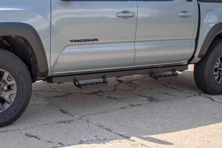 Built from heavy-duty tubular steel with a corrosion-resistant powder coat finish, these running boards provide a robust stepping surface that enhances both convenience and vehicle appearance. The full-length design offers a generous platform for passengers of all sizes, while non-slip step pads improve traction in adverse conditions — giving you confidence whether you’re loading gear, climbing into the cab at a trailhead, or hopping in after a rainy commute. Precision-engineered for direct bolt-on installation, these running boards integrate cleanly with your Tacoma’s frame, ensuring a secure fit without the need for complicated modifications. Designed for durability and everyday usability, this running board system balances rugged off-road capability with refined function for daily driving and weekend adventures alike.