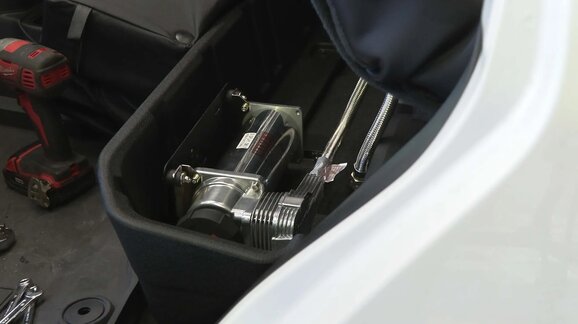 Space-Saving Design: Efficiently utilizes unused space under the rear seat, keeping your air compressor discreet and easily accessible.
