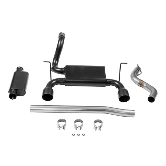 American Thunder Cat-back Exhaust System for Jeep Wrangler JL is the performance exhaust upgrade ideal for drivers looking for a moderately aggressive exterior tone all while keeping interior vibration and resonance at a minimum. This entirely bolt on system greatly enhances flow with a 2.5” mandrel bent inlet pipe and tailpipes finished with two large 4” black ceramic coated exhaust tips for a handsome low profile look. Engineered with the specially designed stainless steel resonator and 80 series cross-flow muffler keep the exhaust growl outside your JL, right where you want it. American Thunder Cat-back is emissions legal in all states and comes with all necessary hardware for a precision fit and easy installation you can do right at home. Backed by a limited lifetime warranty, you can expect this made in the USA exhaust system to perform with durability and reliability for the life of your Wrangler JL, whether it’s a 2 door or 4 door model.