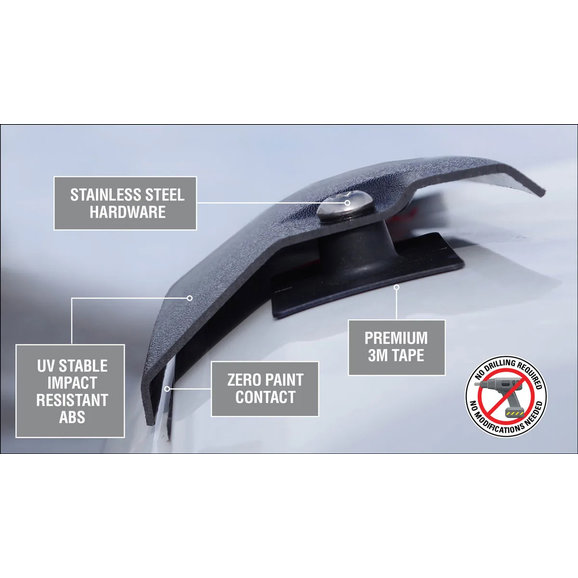 Installation: Installs with 3M Automotive tape, patented mounting clips and stainless steel fasteners. No drilling required.