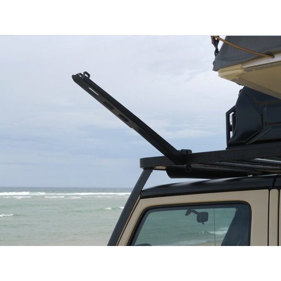 The Front Runner Rack Mount Shower Arm provides a sturdy and foldable solution for mounting a solar shower or showerhead directly on your Slimline II Roof Rack. Made from durable 2.5mm black powder-coated stainless steel, it supports up to 20 liters of water and installs easily by sliding into the side slats of your rack. When not in use, the arm folds flat for compact storage, keeping your setup neat and organized.