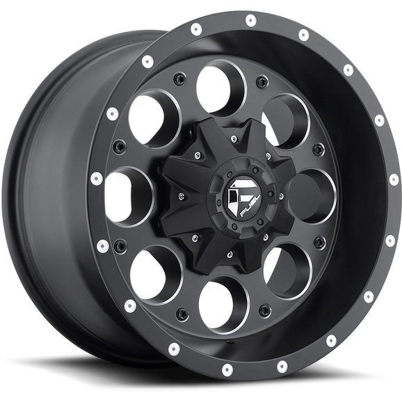 Fuel Off Road presents the Revolver in Black with Machined Accents. Cast of one solid piece of premium aluminum, the Revolver is engineered for longevity with minimal weight gain. Finished in premium black with machined accents, the Revolver is easily paired with other accessories. Many Fuel Wheels are dual drilled for multi-vehicle application. With a circle window design, the Revolver keeps that classic Jeep look while adding a modern twist.