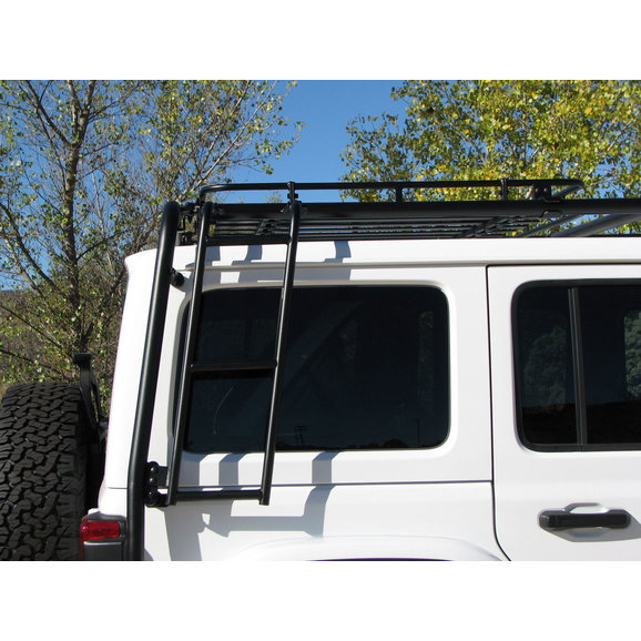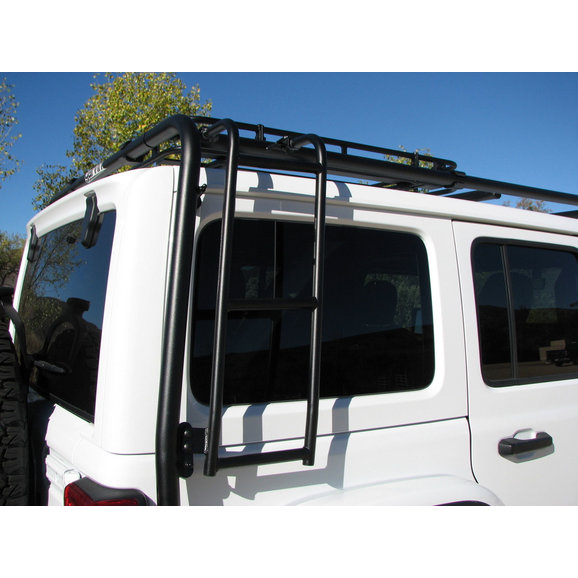 The Adventure Rack Ladder is designed to compliment the Adventure rack on your Jeep Wrangler JL. Making it easier to load gear onto your rack and gain access to that gear during your overland adventures. This Ladder is manufactured from 1" steel tubing and bolts directly to existing holes on your Adventure Full or Half Rack. Compatible on both the 2-door and 4-door Wrangler JL models.