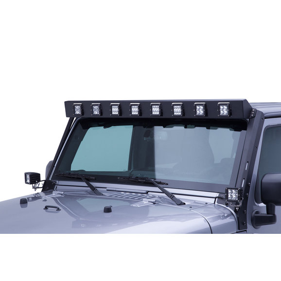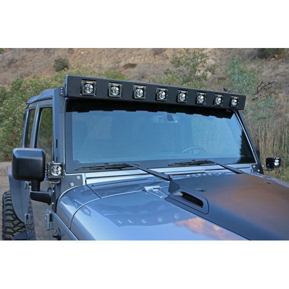 LED cube lights are a must have in the current Jeep Wrangler Aftermarket. Mount 8 cube lights to your Wrangler with the modular Windshield Light Frame (WLF) from Go Rhino. The WLF was designed with built in tracks that can be used to attach vertical stacking tabs to mount lower cube lights. These light mount tabs offer a versatile mounting solution for additional auxiliary lighting. The WLF is constructed from galvanized steel and powder coated for optimum corrosion resistance.