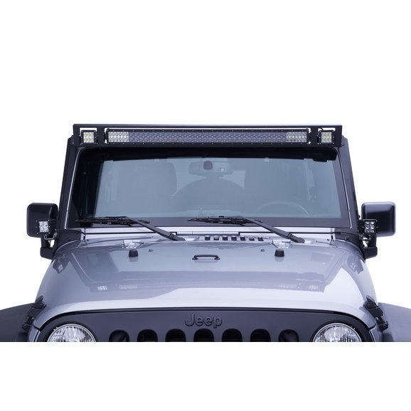 LED lighting is a must have in the current Jeep Wrangler Aftermarket. Mount 2 cube lights and a 40” LED light bar to your Wrangler with the modular Windshield Light Frame (WLF) from Go Rhino. The WLF was designed with built in tracks that can be used to attach vertical stacking tabs to mount lower cube lights. These light mount tabs offer a versatile mounting solution for additional auxiliary lighting. The WLF is constructed from galvanized steel and powder coated for optimum corrosion resistance.