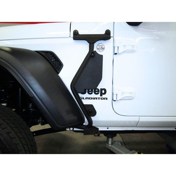 The Go Rhino Exterior Jack Mount for Jeep Wrangler JL & Gladiator JT models is an innovative mounting system to mount your Hi-lift or farm style tall Jack to the hood cowl and lower rocker panel of your Jeep. This mounting system uses factory side step mounts on the lower rocker and the cowl mounts on the upper section. The Jack mount comes in a steel textured black finish that is powder coated for corrosion resistance and durability. The exclusive triangular design and three point mounting system eliminates rattling against the body of vehicle. Mounting the Jack to the exterior of the Jeep frees up that much needed cargo space inside your vehicle. Go Rhino backs this product with a 5-Year Warranty.