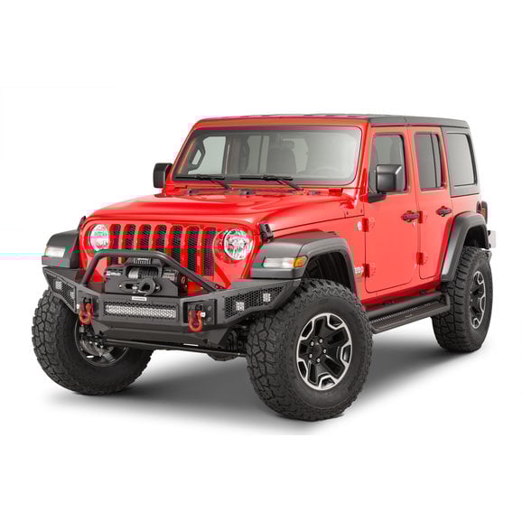 Features: This bumper can mount up to a 12000lbs winch and has 1" thick rhino hooks with cross hole for up to 7/8" d-rings. An 1 3/4" OD tube over rider bar to protect the grille of your Wrangler JK, JL or Gladiator JT. Cut out to hold a 20" double row light bar as well as mounting points to add four 3" cube lights to turn the dark into day when going off-road at night. Hex mesh cover that will protect your lights that you add.