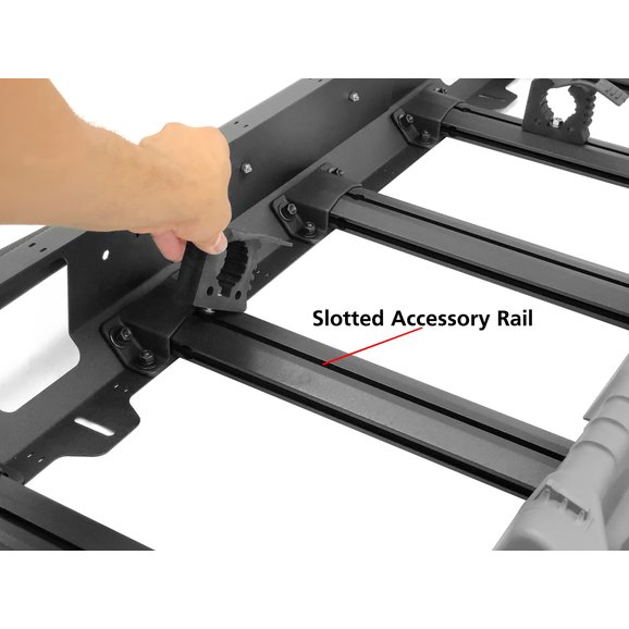 Aluminum Slotted Crossbars: Slotted crossbars allow for tools and attachments to be mounted inside the rack and pre-drilled holes and slots on the outside of rack means trail gear and accessories can be easily accessible while out on your trail adventures. Qty 4 Crossbar Rhino Clamps included (for mounting on crossbars).