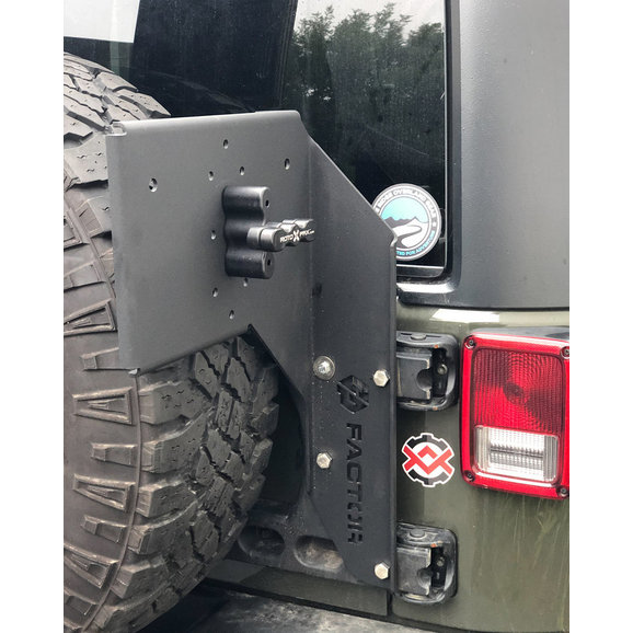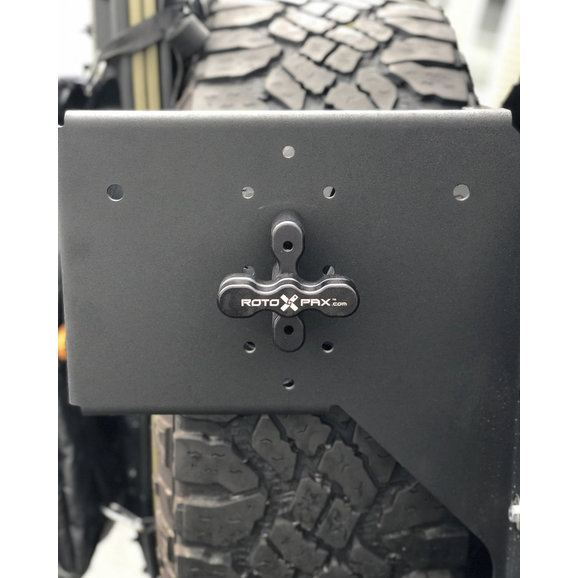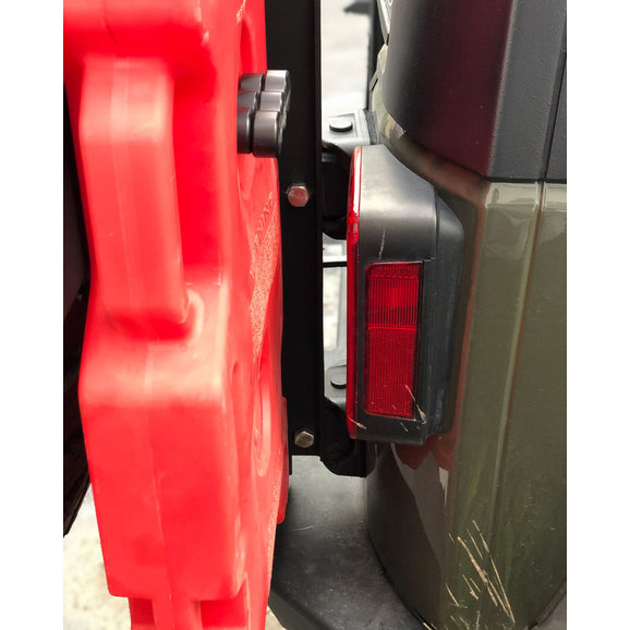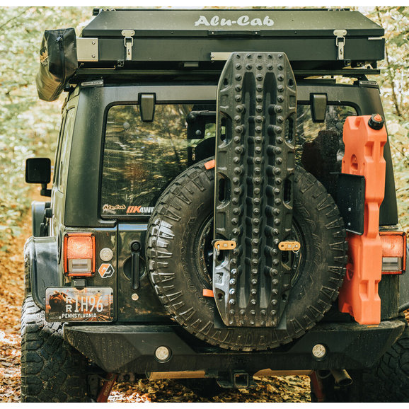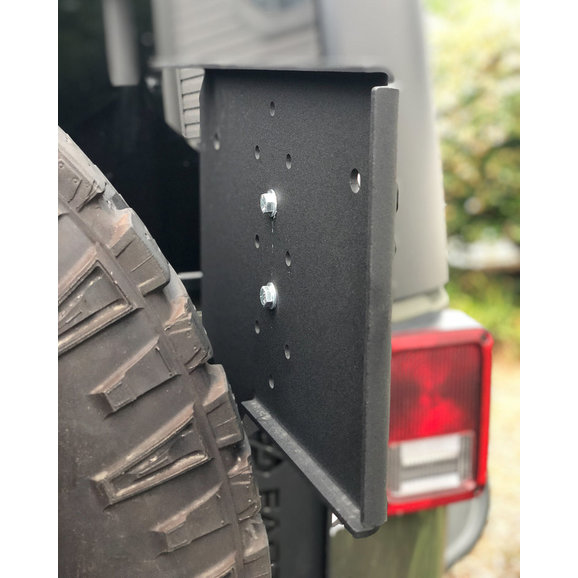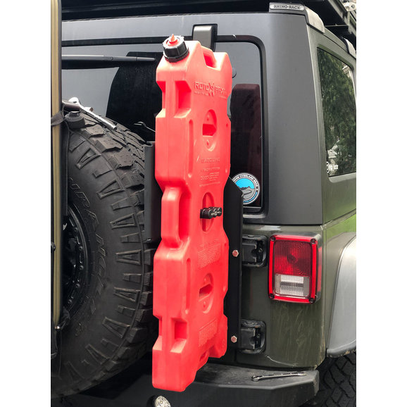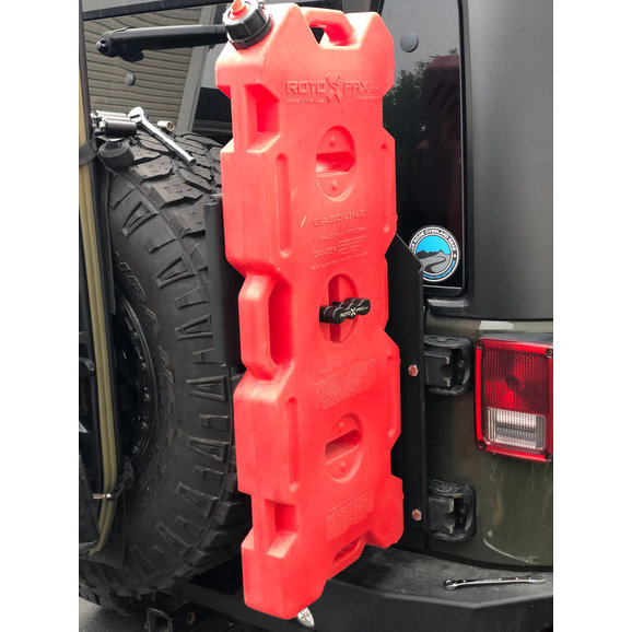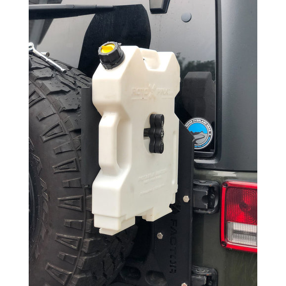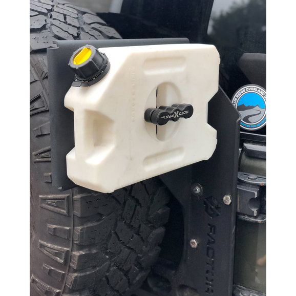 The HD Hinge Accessory Mount from GP Factor is a unique design that allows the mounting of a 4 gallon RotoPax jerry can, and 2 gallon RotoPax cans as well. This heavy duty bracket is designed to work with the Teraflex HD Hinged tire carrier or the Mopar HD carrier for the Wrangler JK. No modifications are required, and this bracket bolts to existing holes in the hinges for optimal stability. Manufactured from strong 3/16" steel and finished with a black powder coat, this add on will stand up to any abuse that comes its way. A built in antenna mount is the perfect spot for your trail CB antenna. HD Hinges and RotoPax can are sold separately.