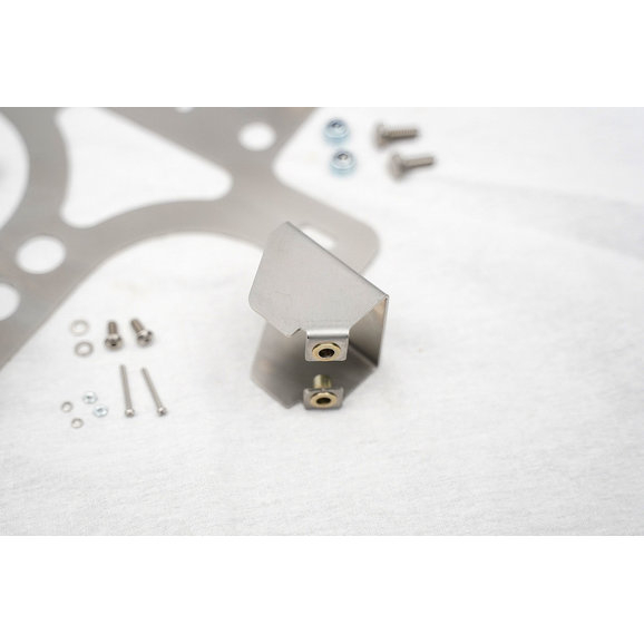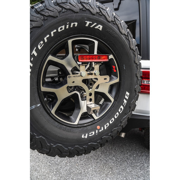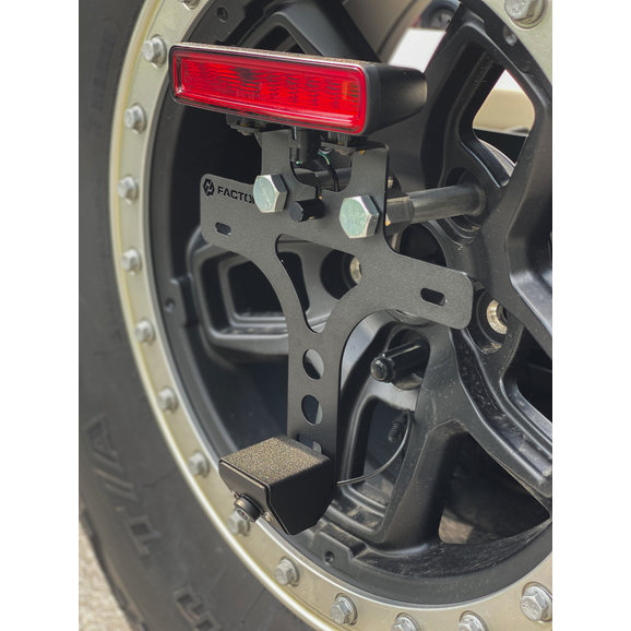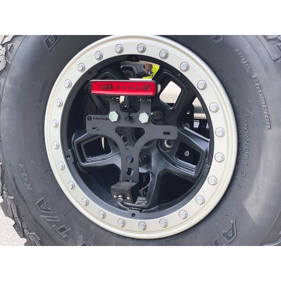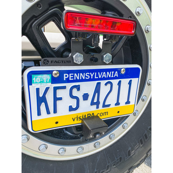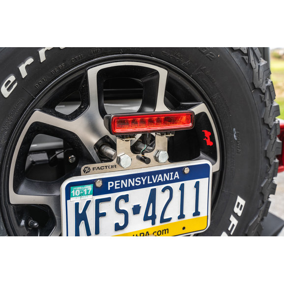 Getting your license plate out of harm's way for JL Wranglers seeking off-road adventure has never been easier than with GP Factor’s License Plate Relocation Kit. Constructed from stainless steel for strength and durability, brackets are laser cut then powder-coated for a clean finished look. Everything is included to mount your license plate to your spare tire away from the damage-prone factory location. An included bracket allows your original third brake light to be relocated if you are running significantly larger off-road tires. Also with included extended lug mounts that work with all wheels, factory or aftermarket, regardless of backspace or offset. A durable stainless hood also protects your factory backup camera that is easily relocated. Fully DOT compliant, this kit features an LED license plate light with included prewired weather pack connector and 6ft of wiring for an easy install. Choose between Black or Stainless finishes.