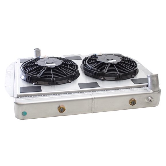 A simple solution to a complicated situation; Griffin ComboUnits are the perfect combination of an aluminum radiator and electric fans. These products are constructed with Griffin 1.25 inch MegaCool tubing, a hand formed, all aluminum shroud, and high performance electric fans. The Combo Unit series has been created by Griffin engineering to take all of the confusing guess work out of switching to electric fans. The best fan for the radiator has been selected, the shroud and fans have been mounted to the radiator, and the wiring harness has been provided. The end result is affordable performance cooling straight out of the box. Griffin Combo Units feature slim line fans to accommodate more makes and models while Griffin Combo Unit Off Road products are equipped with thicker heavy duty fans. Please measure twice and order once.