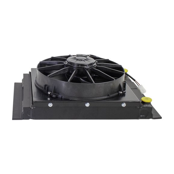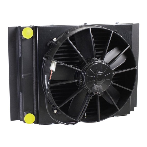 When you are building up your Jeep to handle off-road conditions or heavy hauling, cooling becomes an issue. The Griffin Fluid Cooler with Fan is a universal fit cooling system which can be used to battle high-temperatures which can ruin parts and impact performance. This cooler is made in the USA from light-weight aluminum and features an electric SPAL cooling fan, and is engineered to be added in-line to cool your steering fluid, engine or transmission oil. Two size options to choose from, both with single row, 1.75" tubing and 1/2" NPT inlet and outlet fittings. Custom mounting, wiring and transfer hoses are required. Wiring harness PF-91CH available.