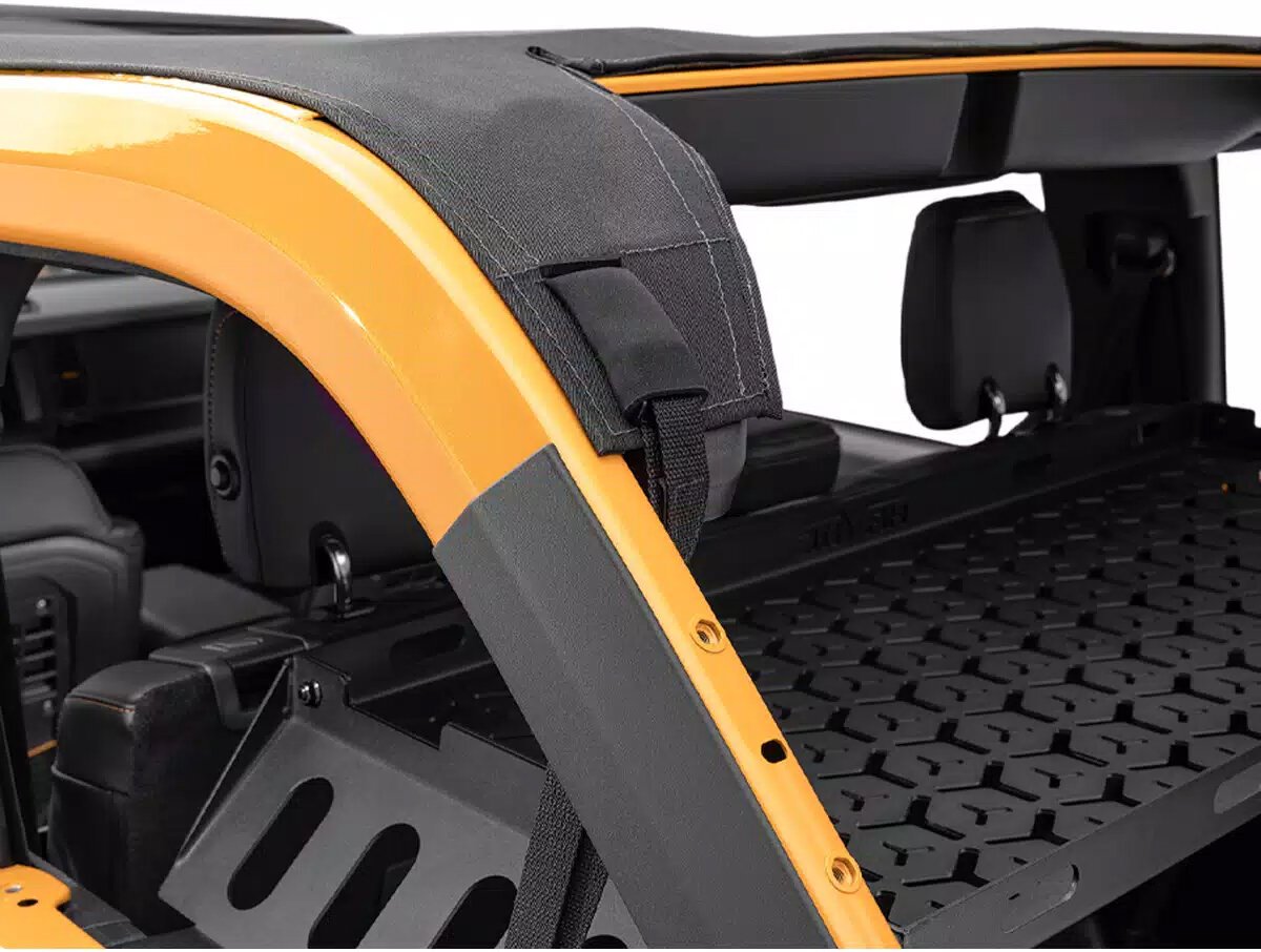 The Havoc Offroad California Brief Top is perfect for Bronco owners who want open-air driving while still staying protected from intense sun and light rain. This minimalist top stretches across the front seating area, delivering shade without blocking the open cabin feel that Jeep enthusiasts love. Built with premium-grade fabric, it maintains its shape and tension even under strong winds, ensuring a consistent and stylish appearance on the road or trail.