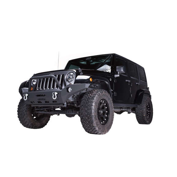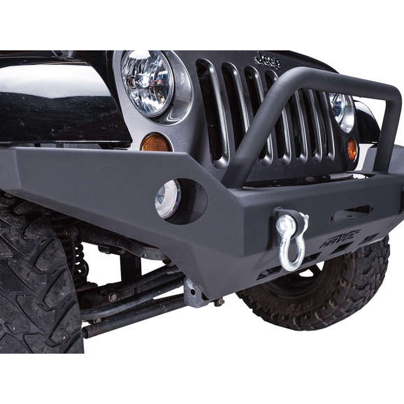 The Claw Hammer Front Bumper with Bull Bar by Havoc will give your Jeep Wrangler JK a stout look and practical protection. Constructed from 3/16" steel with a 2" Bull bar (.120 wall tubing) and light tabs. Allowing for a pair lights or Havoc 12" light bar to be easily bolted on. Finished with a two stage powder coat providing years of protection from the elements. Built in fog light mounts that will accept your original Jeep fog lights. Also including a pair of d-rings to give you a secure pulling point. Winch and lights are sold separate.