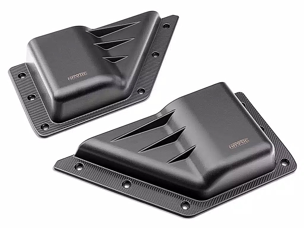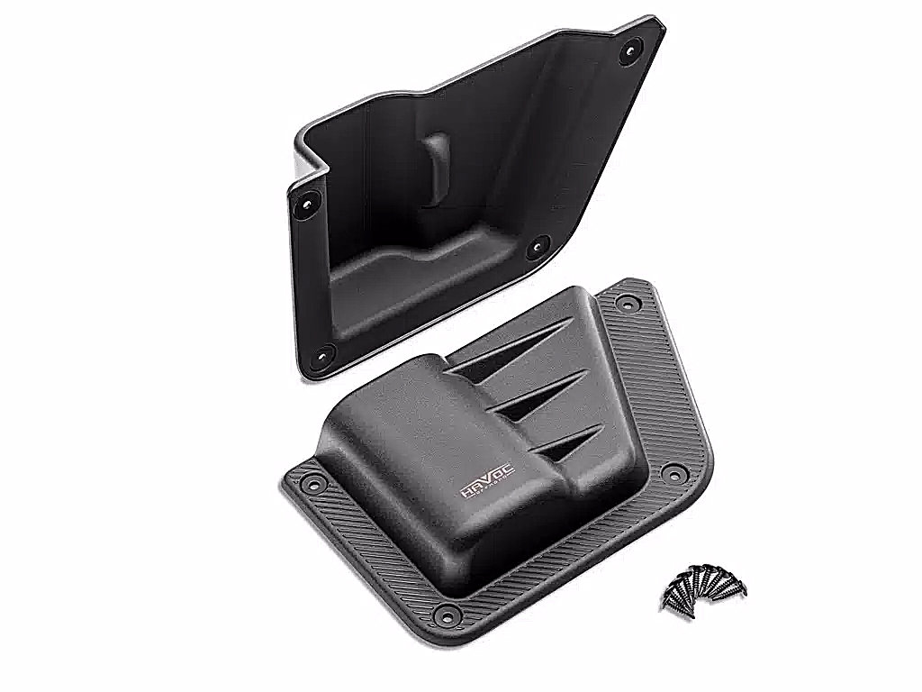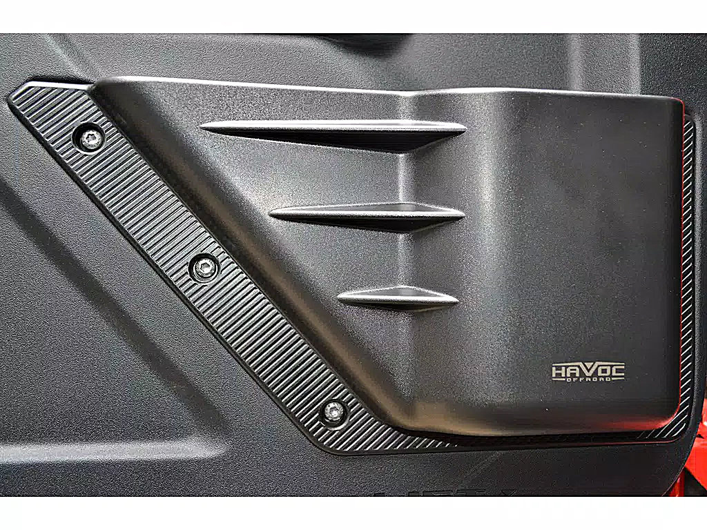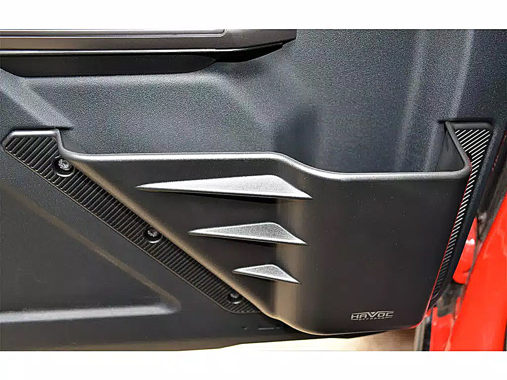 HAVOC Offroad's Door Panel Pockets are exclusively engineered to fit right over the OE door nets on 2021-23 Ford Bronco Models without reducing interior legroom. Designed with durable, molded ABS thermoplastic for excellent longevity on or off the trail. Maximizes interior organization and adds easily reachable storage. Includes all mounting hardware for simple, hassle-free installation. Features five-year warranty. Please note: Does not fit Bronco Sport models.