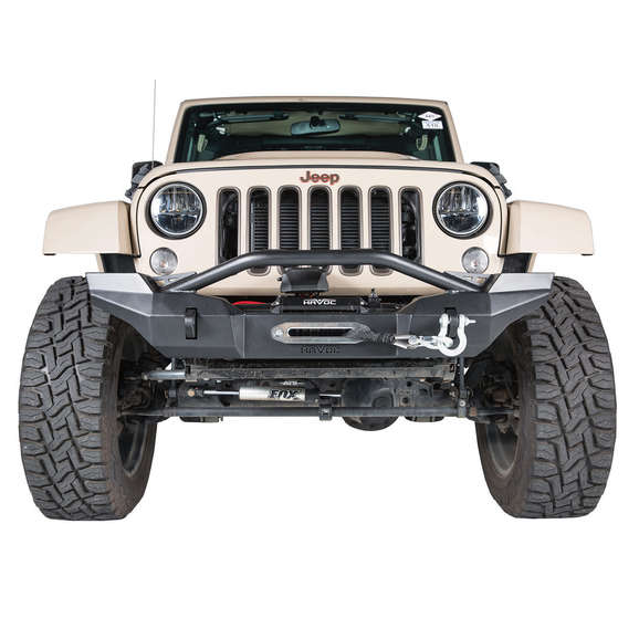 Looking for a aluminum bumper for your Jeep Wrangler JK? The Havoc Offroad Eliminator Front Modular Mid Width Bumper is offered in both a steel or aluminum material. Providing a recessed winch plate (10x4.5" bolt pattern) allowing a winch to be mounted in a stout position without effecting the air flow to your radiator. Built from a CNC laser cut 3/16" steel and a 2 inch bull bar made from .120 wall tubing. Including 2 d-ring shackles. Winch is sold separate.