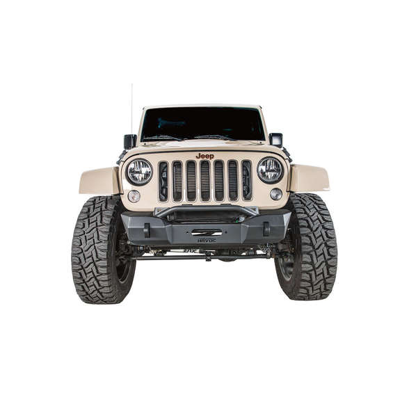 Havoc Offroad offers this Eliminator Front Modular Stubby Bumper for your Jeep Wrangler JK. Providing a recessed winch plate (10x4.5" bolt pattern) allowing a winch to be mounted in a stout position without effecting the air flow to your radiator. Built from a CNC laser cut 3/16" steel and a 2 inch bull bar made from .120 wall tubing. Including 2 d-ring shackles. Winch is sold separate.