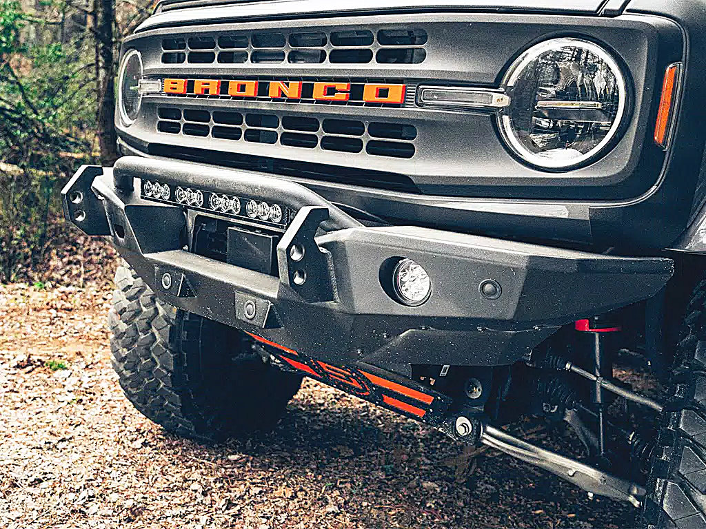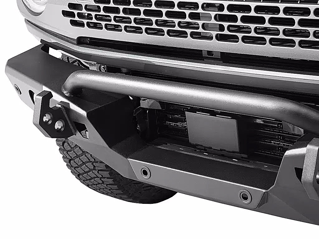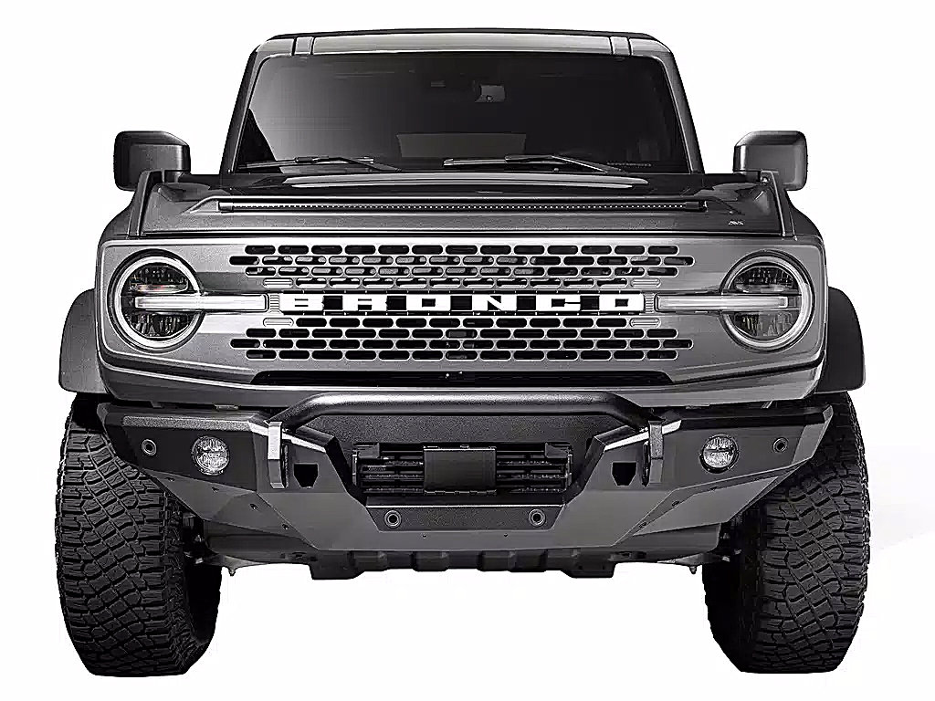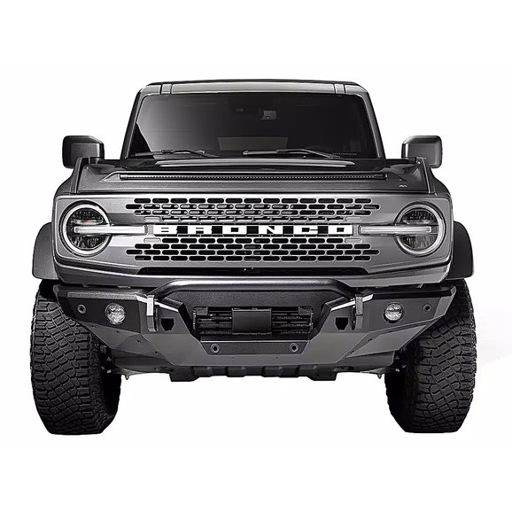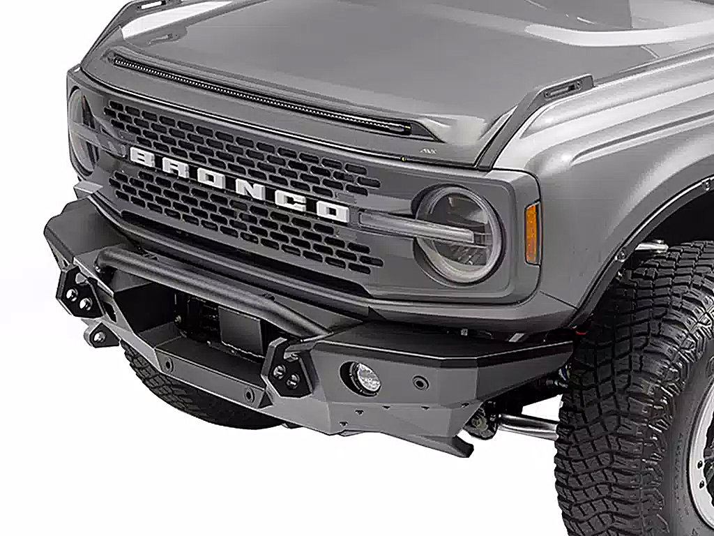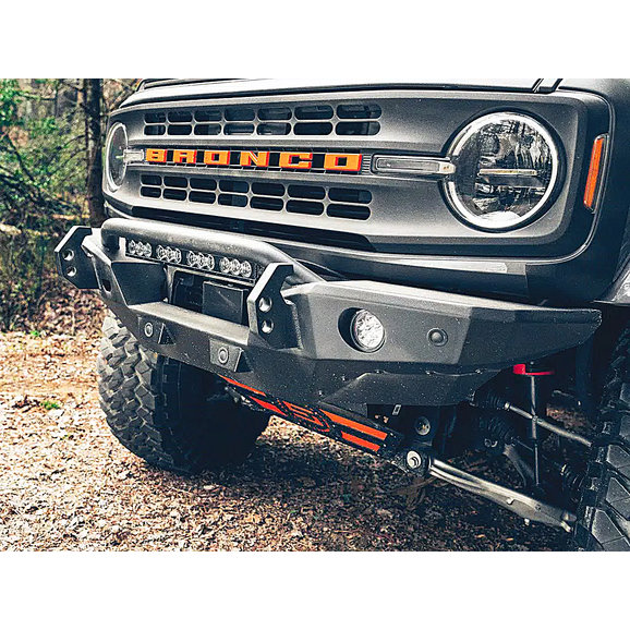 The Havoc Offroad Steel Bender Front Bumper is designed to bring your Ford Bronco up a notch. Manufactured from rugged 1/8” steel plates for long-lasting, durable performance with 1” dual-drilled recovery hooks, this bumper is ready for the toughest of trails. The low-profile design paired with a textured black powder coat finish offers a sharp, no-nonsense look for your Bronco. The recovery hooks are made to accept 3/4" and 7/8” D-shackles while the bumper features integrated off-road jack lifting points, so this bumper is built tough and recovery ready. Backed by Havoc Offroad’s Five-Year Limited Warranty and made to be compatible with OEM sensors and cameras, this bumper is built to endure and can be bought with peace of mind.