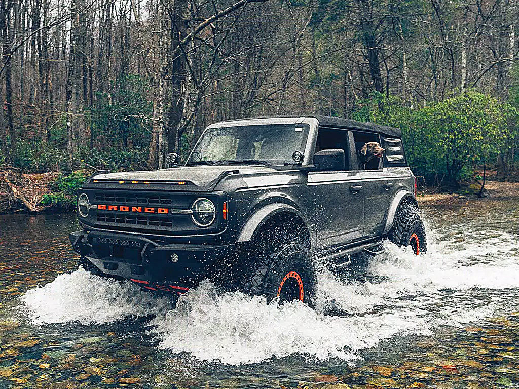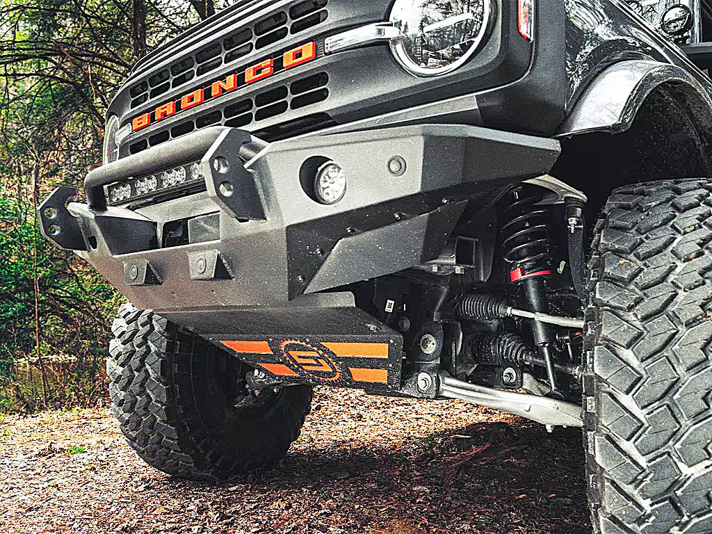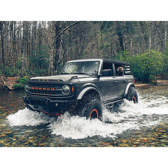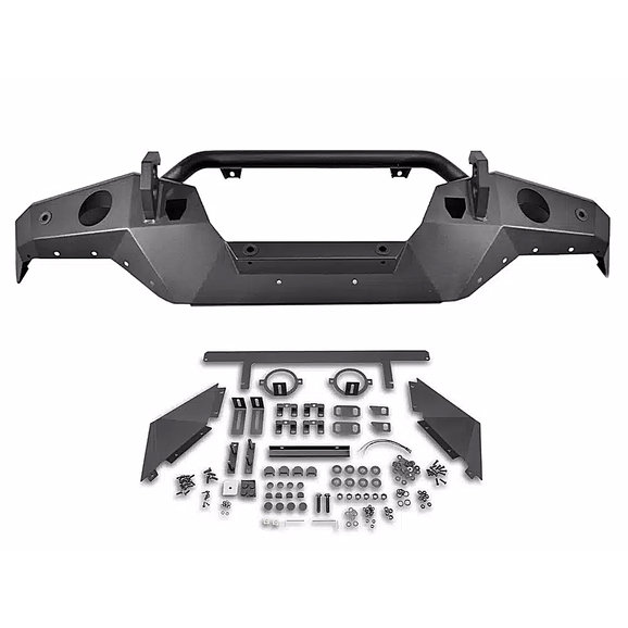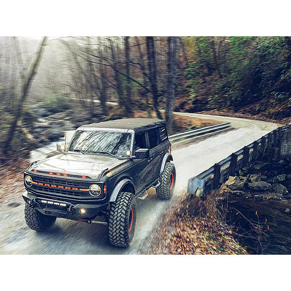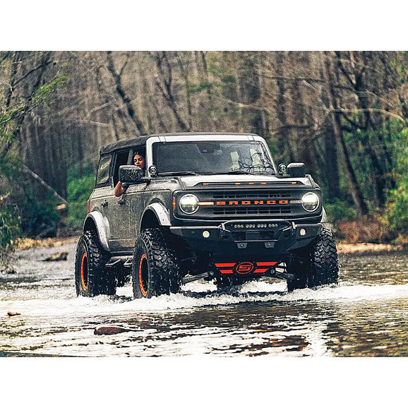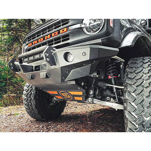 The Havoc Offroad Steel Bender Front Bumper is designed to bring your Ford Bronco up a notch. Manufactured from rugged 1/8” steel plates for long-lasting, durable performance with 1” dual-drilled recovery hooks, this bumper is ready for the toughest of trails. The low-profile design paired with a textured black powder coat finish offers a sharp, no-nonsense look for your Bronco. The recovery hooks are made to accept 3/4" and 7/8” D-shackles while the bumper features integrated off-road jack lifting points, so this bumper is built tough and recovery ready. Backed by Havoc Offroad’s Five-Year Limited Warranty and made to be compatible with OEM sensors and cameras, this bumper is built to endure and can be bought with peace of mind.