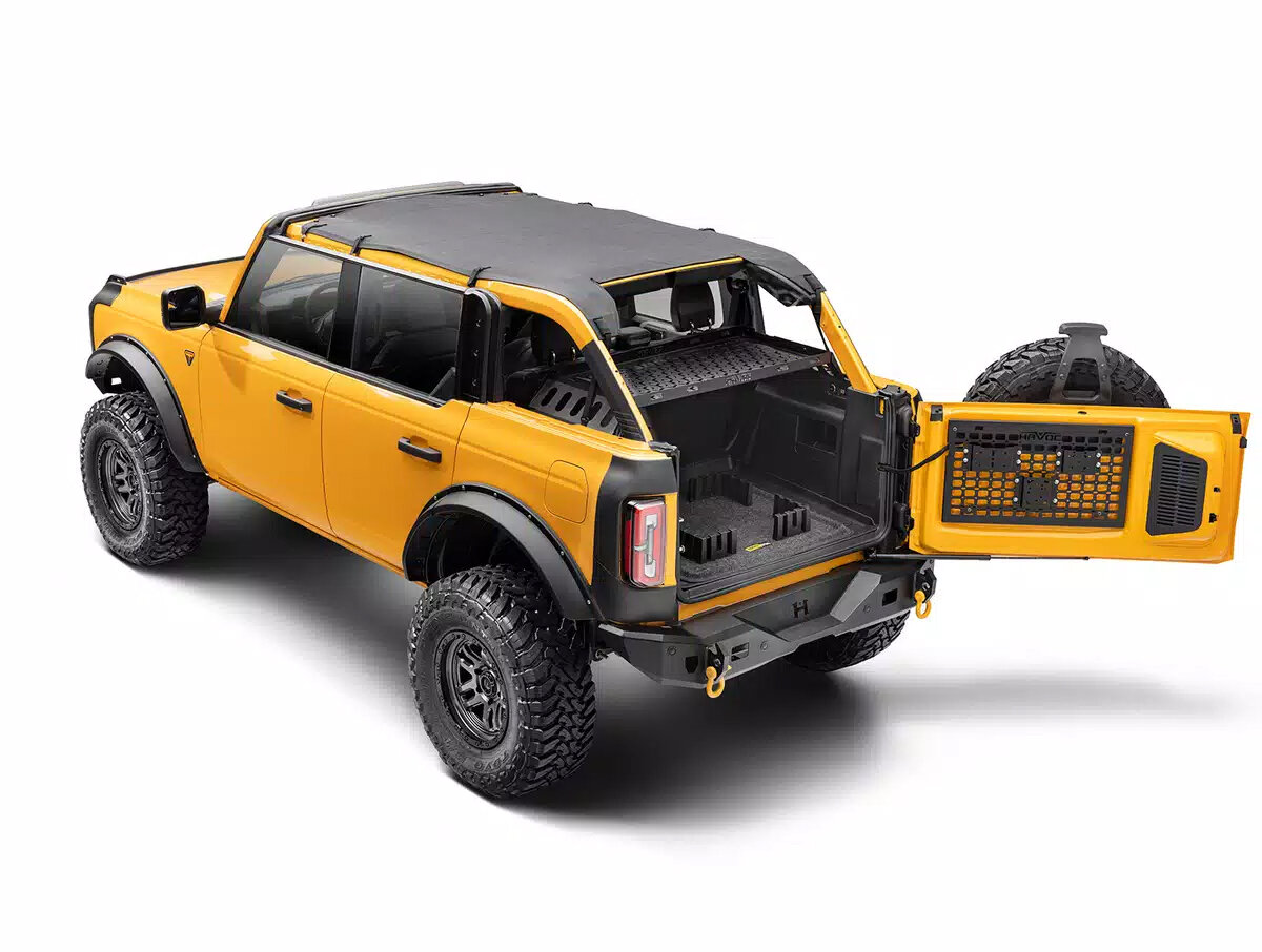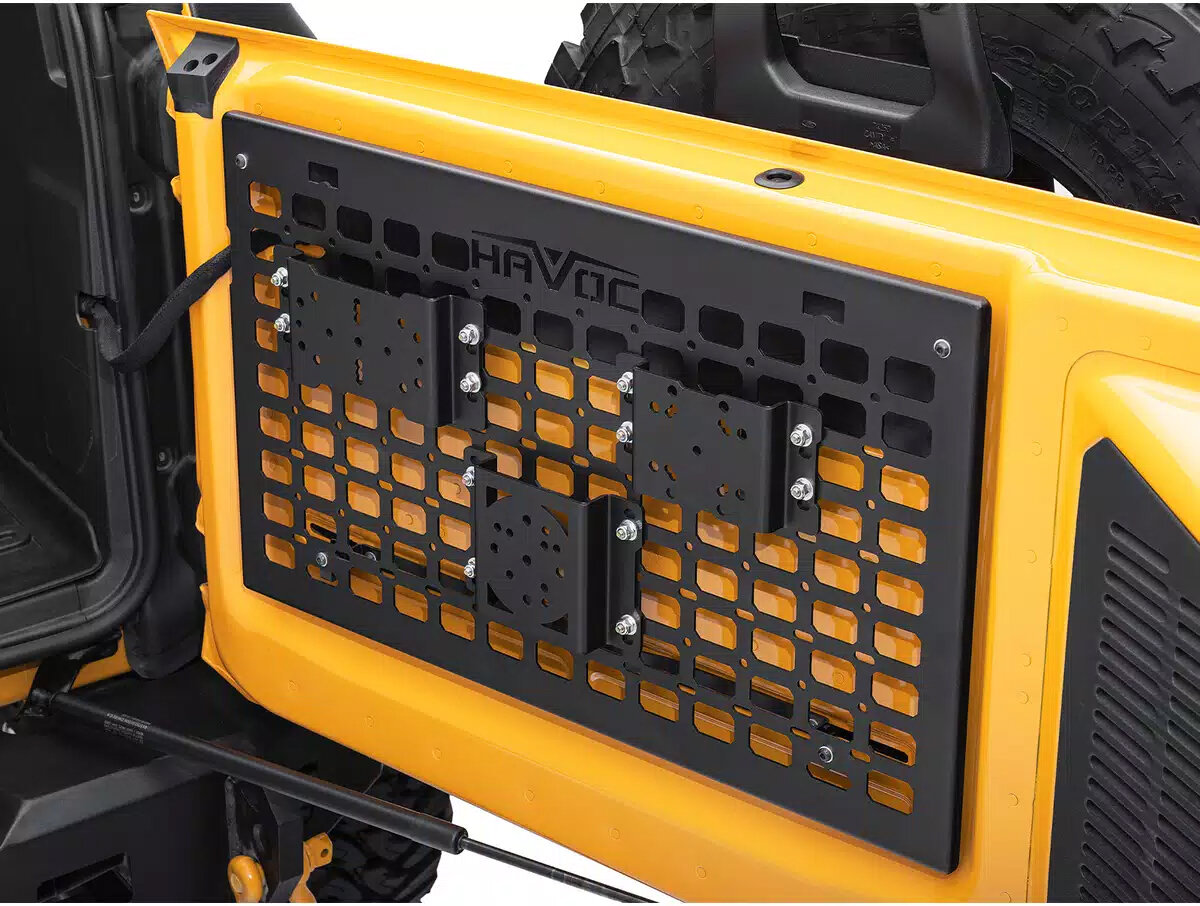 Installation is quick and hassle-free, requiring no drilling or cutting. The panel mounts directly to existing holes in the tailgate using the included hardware, making it a straightforward DIY upgrade. Its application-specific design ensures a perfect fit and seamless integration with your Bronco’s interior. Backed by Havoc’s limited 5-year warranty, this MOLLE panel is built to handle the demands of off-road life while keeping your gear secure and accessible.