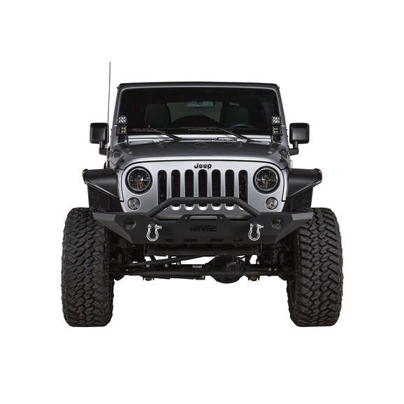 Looking for a bumper that is made in the USA for your Jeep Wrangler JK at a reasonable price? Look no further than the Wrecking Ball Front Bumper with Bull Bar by Havoc. Constructed from 3/16" steel with a 2" Bullbar (.120 wall tubing) and light tabs. Finished with a two-stage powder coat providing years of protection from the elements. Built-in fog light mounts that will accept your original Jeep fog lights. Also including a pair of d-rings to give you a stout recovery point. Compatible with the Havoc 12" LED light bar. Winch and lights are sold separate.