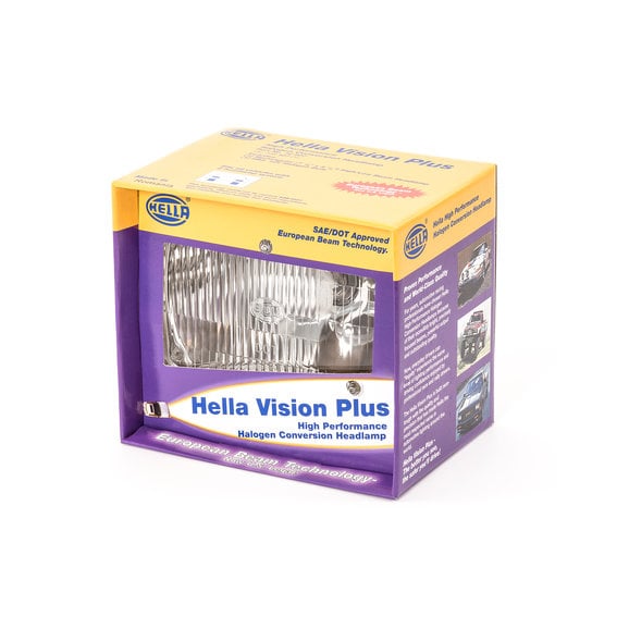 Hella 003427291 Vision Plus Rectangular H4 Conversion Halogen Headlight for 84-01 Jeep Wrangler YJ & Cherokee XJ, MJ