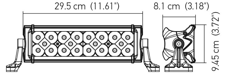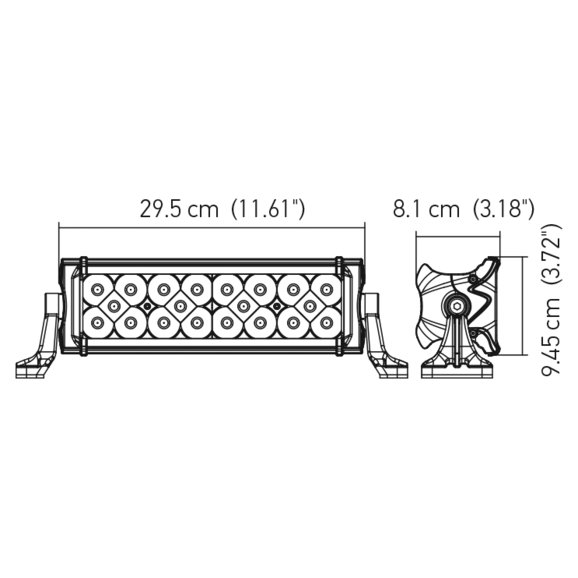 - 11.6” W x 3.7” H x 3.2” D / 295 x 96 x 81mm