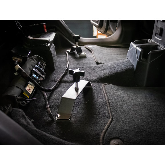Simple Installation: Installation is quick and easy by bolting the brackets into four factory mounting points underneath the rear seat of the Jeep Gladiator. (Mounting points are revealed by removal of the rear cargo tray or cargo box.).