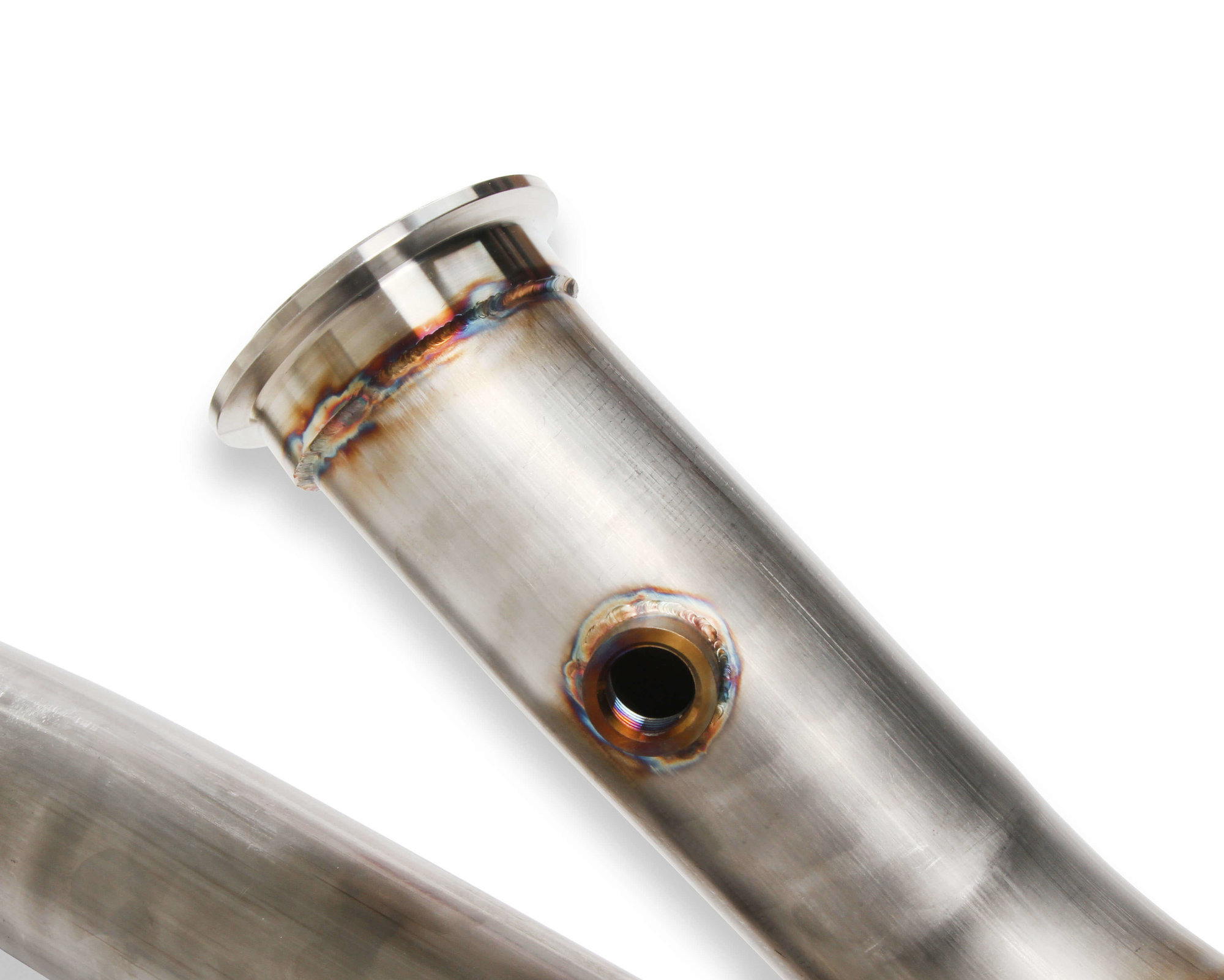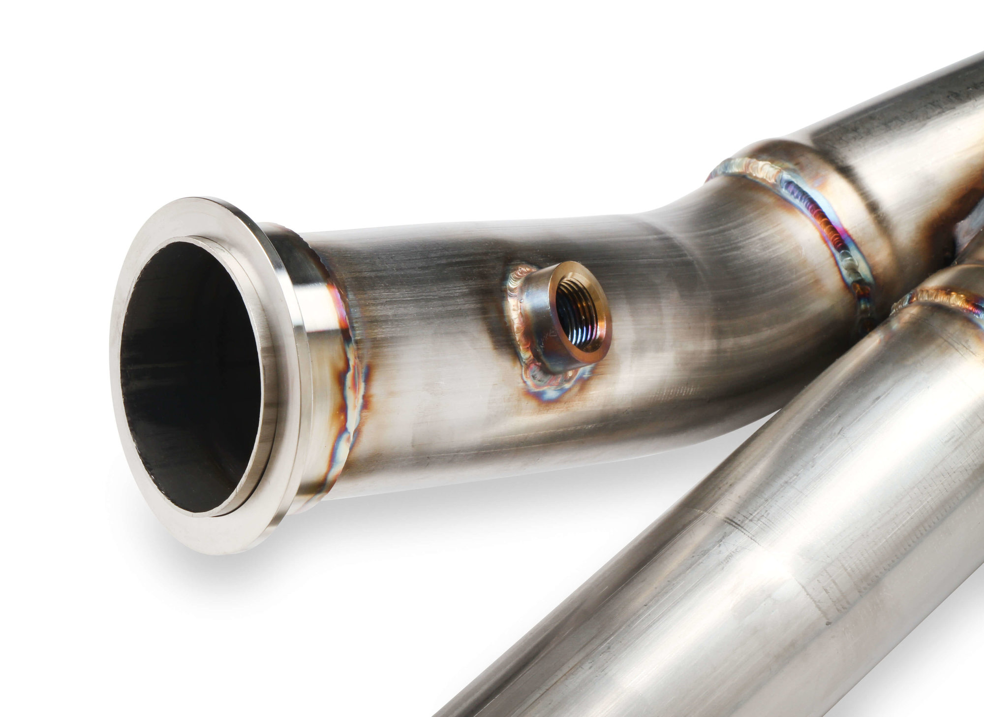 This BlackHeart Stainless Steel Y-pipe makes dropping V8 power into your Wrangler simple. Made for 1987-2006 Jeep Wrangler with a Gen III 5.7L Hemi, this formation is made from 18-gauge, 304 stainless steel for lightweight, strength and superior corrosion resistance. The inlets are 2-1/2 inch and connect directly to BlackHeart headers for a hassle free install. The 3 inch outlet provides excellent flow while still providing a high-tuck connection for clearance. The V-band connections and dual O2 bungs provide convenience and multiple mounting options for related accessories.