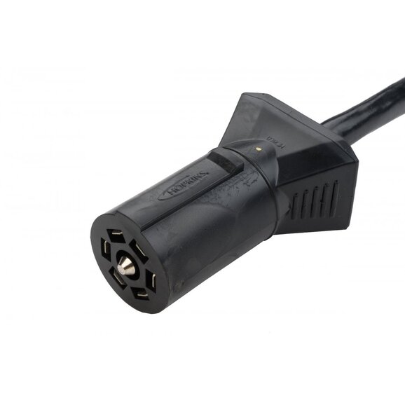 The Hopkins LED Test 7 Blade Molded Connector w/ Cable, 6' is wired to RV standards. The wires are protected by jacketed wire sleeves for longevity. Know if electrical continuity exists for each tow function with the LED lights. This connector is also impact and corrosion resistant for your peace of mind.