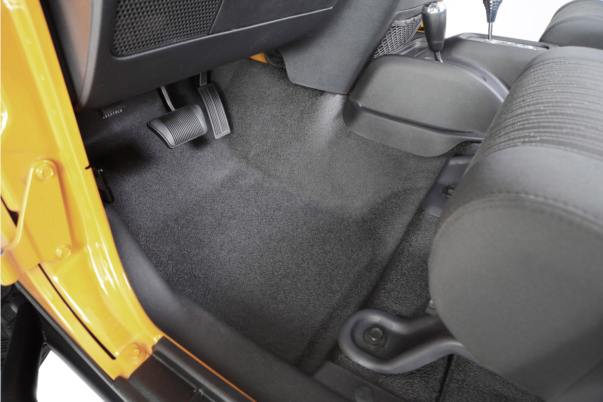 Looks and feels like high end spray in bed liner and is custom molded for a perfect fit; and we mean PERFECT! The Front 3-piece custom molded liner system is easy to install and even easier to remove and hose off after a long day on the trail. BedTred does not absorb water and will dry in as little as 20 minutes. It's resistant to harsh chemicals, such as bleach, oil, battery acid and gasoline and is both fade and UV resistant. There's nothing to trim and there's no tools required to install or remove for cleaning.* The BedTred material is super resistant to stains, odors, mold and mildew and the 1/4" thick polypropylene foam insulates your interior from road noise and heat. Driver area features a tough plastic heel pad that's stitched into place. The scrub-able and skid resistant TPO composite surface features an aggressive textured black finish. Backed by a 30-day money back guarantee and a three year warranty.
