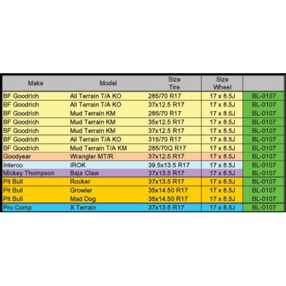 Inner Beadlock Seal Specific When Choosing What Bead Seal is Correct for you, Refer to Hutchinson"s Chart with the BL0106 seal option is for popular Brands like BF Goodrigde Rugged Terrains and All Terrains, Goodyear Eagles and Wranglers, Michelin Pilots and All Terrains, Mickey Thompson Baja, Pitbull Rockers, and Toyo Open Countries while the BL0107 fits BF Goodriich All Terrain KO's and Mud Terrain KO's, Good Year Wranglers MT/R's, Interco Irok's, Pit Bull Rockers and Growlers and Pro Comp X-Terrains.