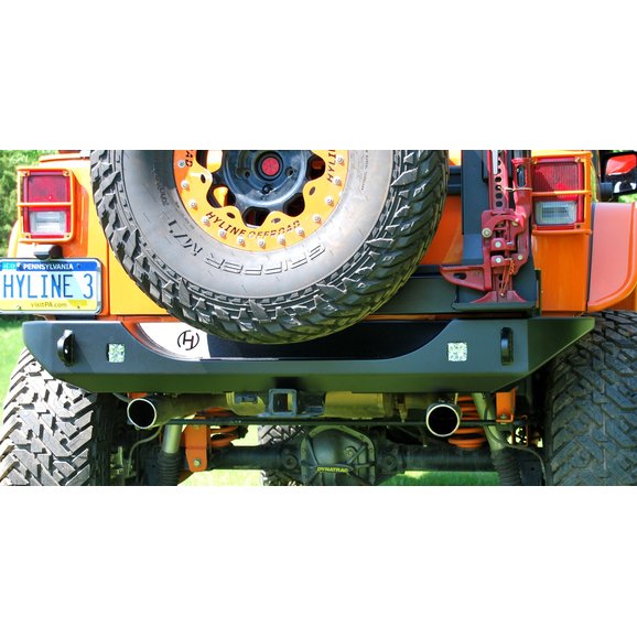 The Ridgeline Midwidth Rear Bumper is the perfect complement to their front bumper systems. This bumper wraps just around the tub corners, giving you some body protection. The Ridgeline Rear Bumper meticulously matches all the curves of the JK bodylines. It doesn’t just look great...it’s functional, easy to install and will stand up to years of abuse. It’s fabricated using USA Grade 3/16” Steel Plate that is laser cut, CNC formed, welded, and hand finished by craftsmen. The D-Ring mounts are 5/8” Thick Plate and are welded front and back so they can be used confidently as recovery points. Our bumper allows for the use of a factory or aftermarket Hitch Receiver, which could also be used as a center recovery point. The Ridgeline Rear Bumper also incorporates cutouts and mounting brackets to add rear 3” LED cube lights. All bumpers receive a thorough zinc phosphate rinse and cleaning, then are E-Coated and Powder Coated with light black texture. The textured powder coat matches the texture on the stock black fender flares almost perfectly. Completely Bolt on, No Cutting and/or Drilling Necessary. The Swingout Tire Carrier is heavy duty and opens and closes with the stock tailgate. Finally, there is no cumbersome latch or secondary operation to open your swingout tire carrier. Simply open your tailgate latch and the tire carrier will swing open with it. RotoPax mount sold separately. PROUDLY MADE 100% In USA.