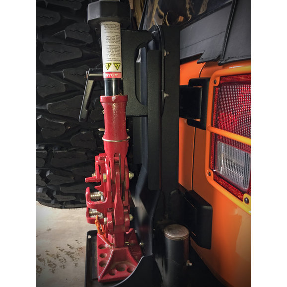Design: Specifically made to fit on the Hyline Swing out Tire Carrier giving you a sleek way of mounting your Hi-Lift jack outside of your Wrangler JK. A wear pad is included to prevents the jack foot from scarping up the bottom of the bracket, an easy to use threaded handle for quick removal or install of the jack plus specifically placed holes so you can lock you jack to the bracket keeping it safe.
