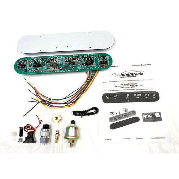 Bring your Jeep to the digital age with this 6 Gauge Digital Universal Panel from Intellitronix. This panel brings ultra bright LED readings to your dash panel giving you precise accuracy while adding a nice touch to the interior with the multiple color options. When the ignition is off the face plate gives you a completely black out look for even more style points. Measures at 13.5" in width, 2.5" in height & 3/4" in depth.