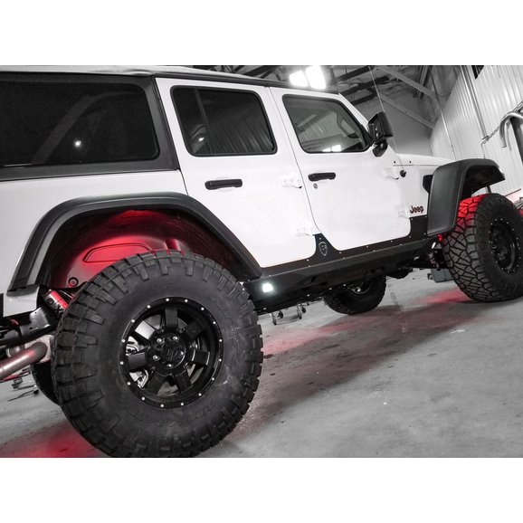 Features: These sliders have Hi-Lift jacking points on the front and rear to help you out of some jams while on the trails. The step feature is great for aiding in getting in or out of your Jeep while the LED rock lights will help out if you are going on night time trail runs.