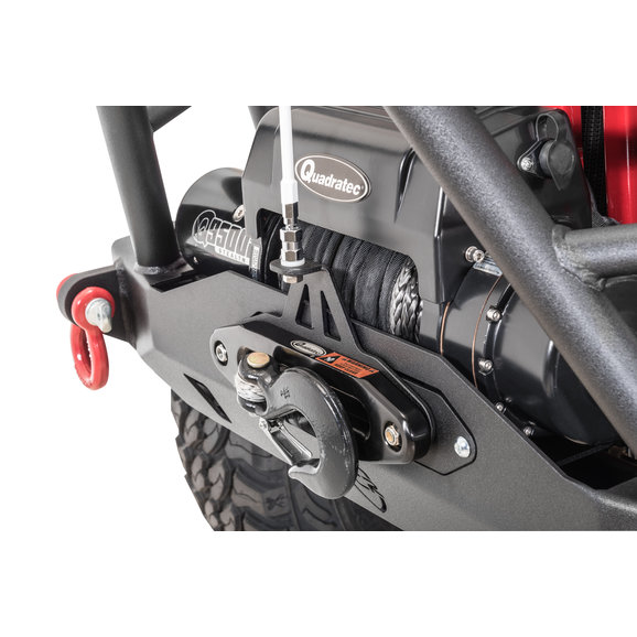 The JCR Fairlead Trail Flag Mount allows for a quick and easy mounting location for your front mounted offroad flag. JCR designed this bracket to work with both roller and hawse style fairleads on most winch bumpers. The mount is cut and formed from 3/16" steel, and uses an easy bolt on installation.